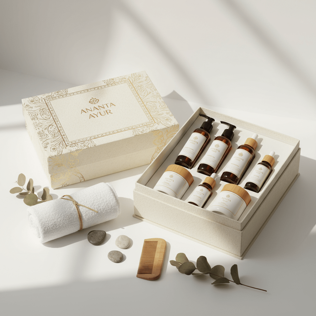 最高級のアーユルヴェーダ体験を提供するラグジュアリーギフトセットです。厳選された5つのプレミアム製品で、本格的なウェルネスライフをスタートできます。